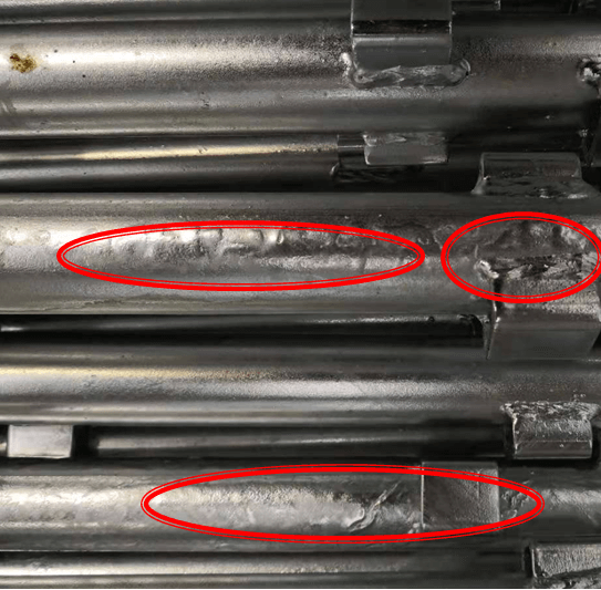 4.酸洗時(shí)間偏長或酸洗不到位,表面不平整,鋅浴后出現(xiàn)鋅瘤。